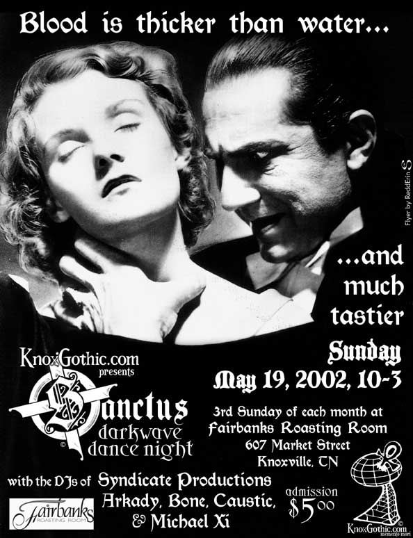 04.21.2002 | Sanctus Flyers | 06.16.2002 Home | Forum | Dance | Links | People | History | Pleasures | Contact © 2002 KnoxGothic.com