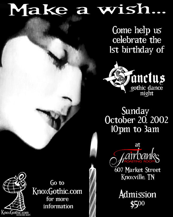 09.15.2002 | Sanctus Flyers | 01.19.2003 Home | Forum | Dance | Links | People | History | Pleasures | Contact © 2002 KnoxGothic.com
